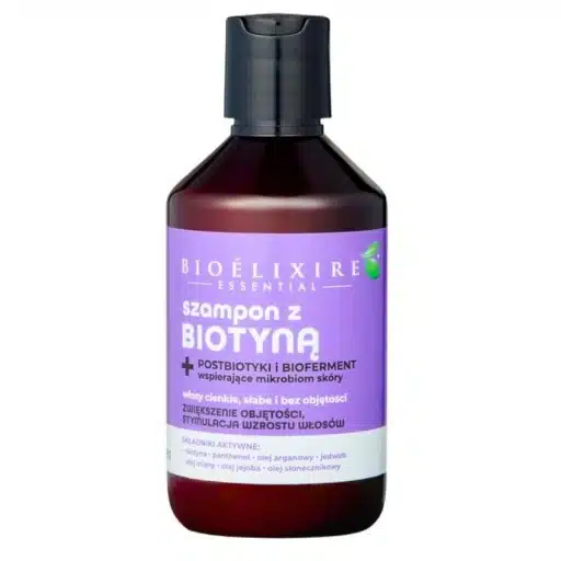 SZAMPON Z BIOTYNA WŁOSY CIENKIE SŁABE WZMACNIAJĄCY BIOELIXIRE 300 ML to gwarancja kompleksowej pielęgnacji dla osób z problemem osłabionych i cienkich włosów. Dzięki zawartości biotyny poprawia strukturę włosa od nasady aż po same końce, co przekłada się na widocznie gęstsze i bardziej sprężyste pasma.